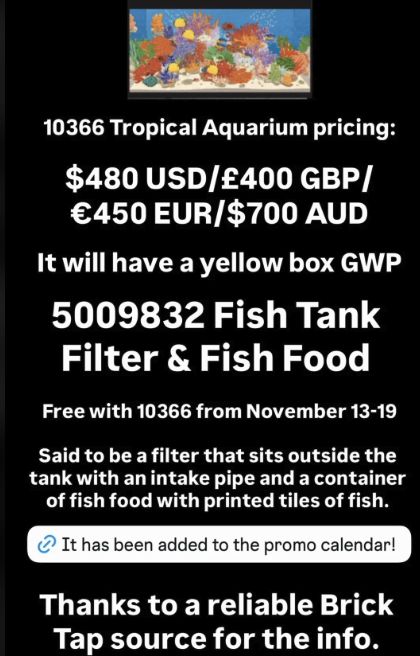前两天才刚官宣了最新的即将发售的10366 Tropical Aquarium 热带水族馆,结果没几天,又有一款鱼缸谍照公布了,立刻看看!
