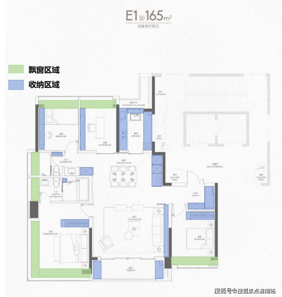 188户型2梯2户,有独立的电梯厅。4房3卫设计,还是3明卫,这两点还是不错的。