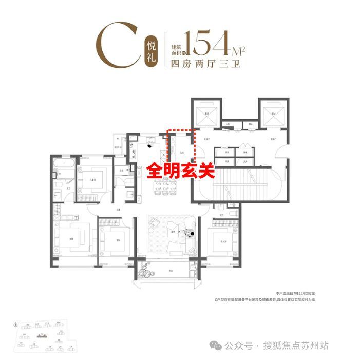 如果说建面约130㎡是“精致改善”的范本,建面约154㎡正四房则是“奢居理想”的实景答卷。
