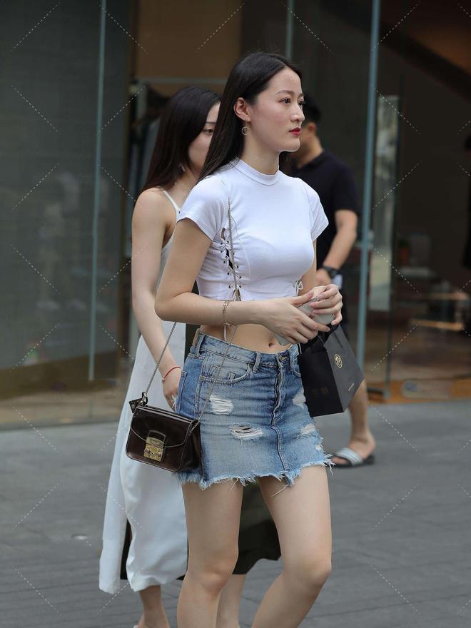牛仔裙往往能够比牛仔短裤更加去凸显一个人腿部线条的完美。牛仔裤对于的身形要求比较高,但是牛仔裙相对来说只是要求你在腹部的位置没有过多赘肉都可以去尝试。