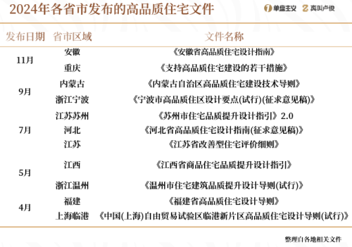 安徽要求新房小区人车分流,重庆鼓励四代宅建设,苏州则指出改善型住宅应设置独立的储藏室、前置过滤器和直饮水机等