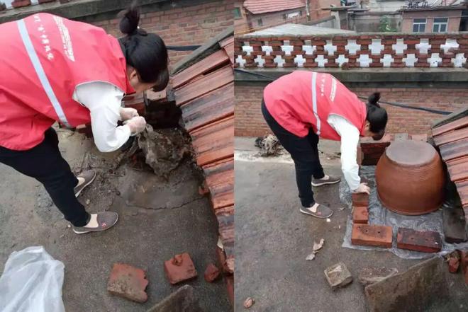 “屋里到处接水,真是没办法!”独居的任大姨看着漏雨的屋顶犯愁,直到网格员曹素芳走访时发现了问题。她爬上屋顶仔细排查,很快找到症结——烟囱口的木板被雨水泡烂,导致雨水渗入。