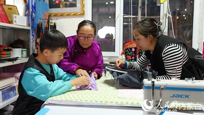 敖民坦言,创业初期曾因性别遭遇质疑,“别人觉得男孩做不了细活,但我一步步地把口碑做起来了。”为了精进技艺,他特意远赴蒙古国,向当地资深匠人请教传统纹样技法;还专程前往苏州学习苏绣,把不同非遗技艺的精髓融会贯通。回来后,他大胆将现代服装剪裁手法、潮流配色融入传统蒙古袍设计,让老服饰焕发出新韵味,很快就打开了市场。