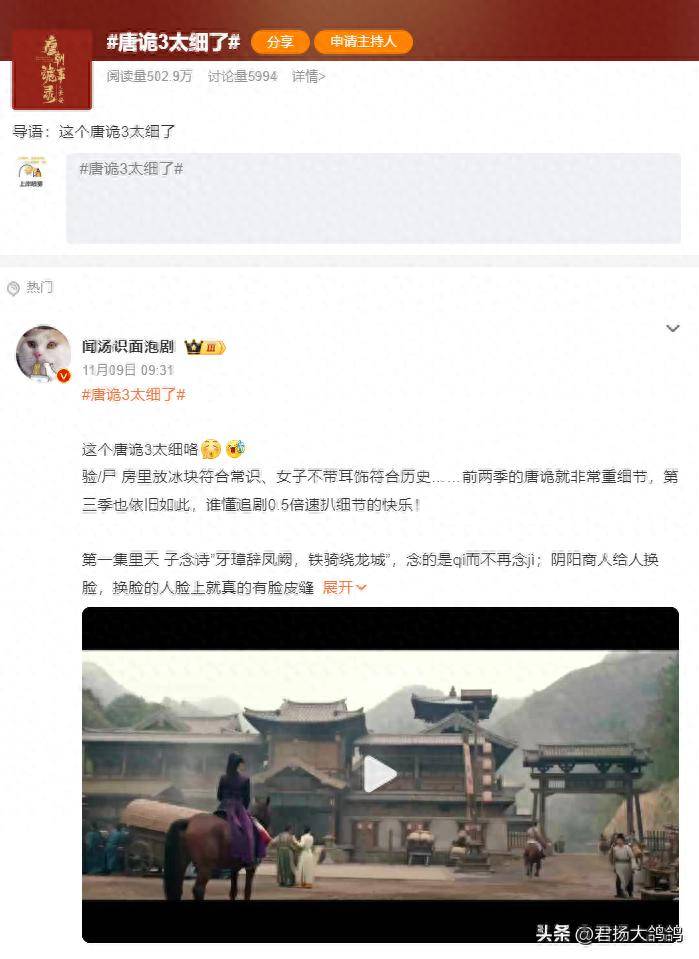 简短几句线》在细节上的完美呈现。如果要评选近些年最具质量的古装悬疑剧,《唐诡3》无疑是最有力的竞争者。
