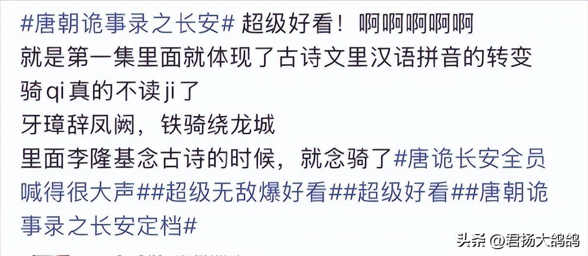 剧中甚至注意到一些古今有别的发音差异,李隆基在读到“铁骑绕龙城”时,发音与现代普通话的“ji”不同,而是与中古汉语的发音更为贴合。