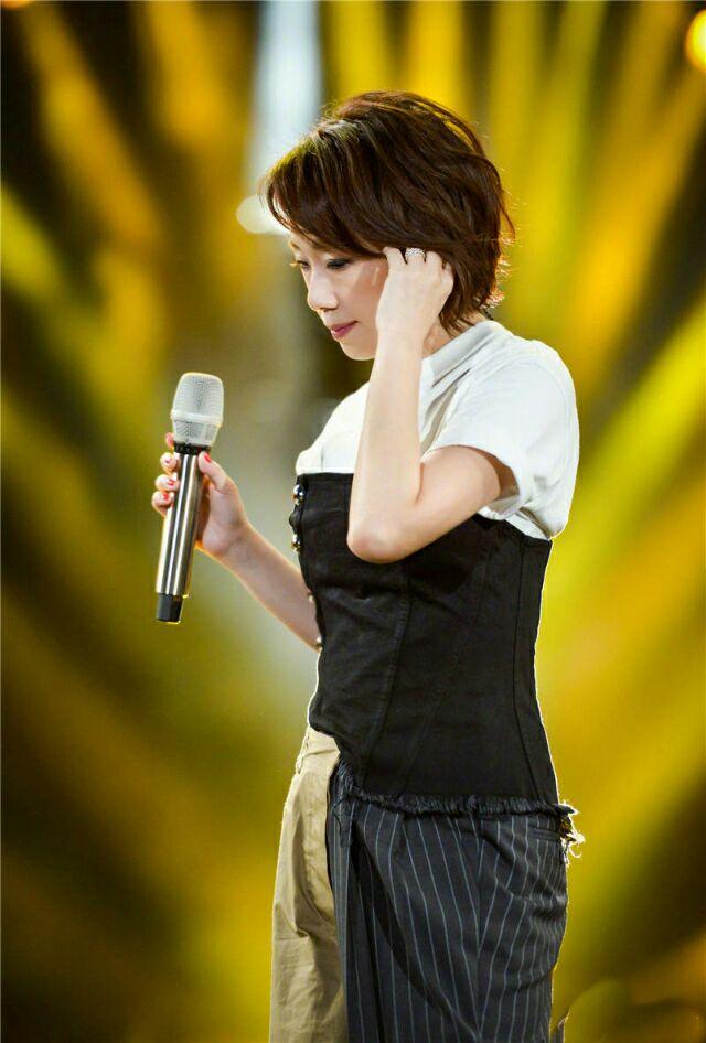 林忆莲一头短发,微卷造型,很有成熟女人味。51岁的林忆莲身材保持的很好,年轻活力。