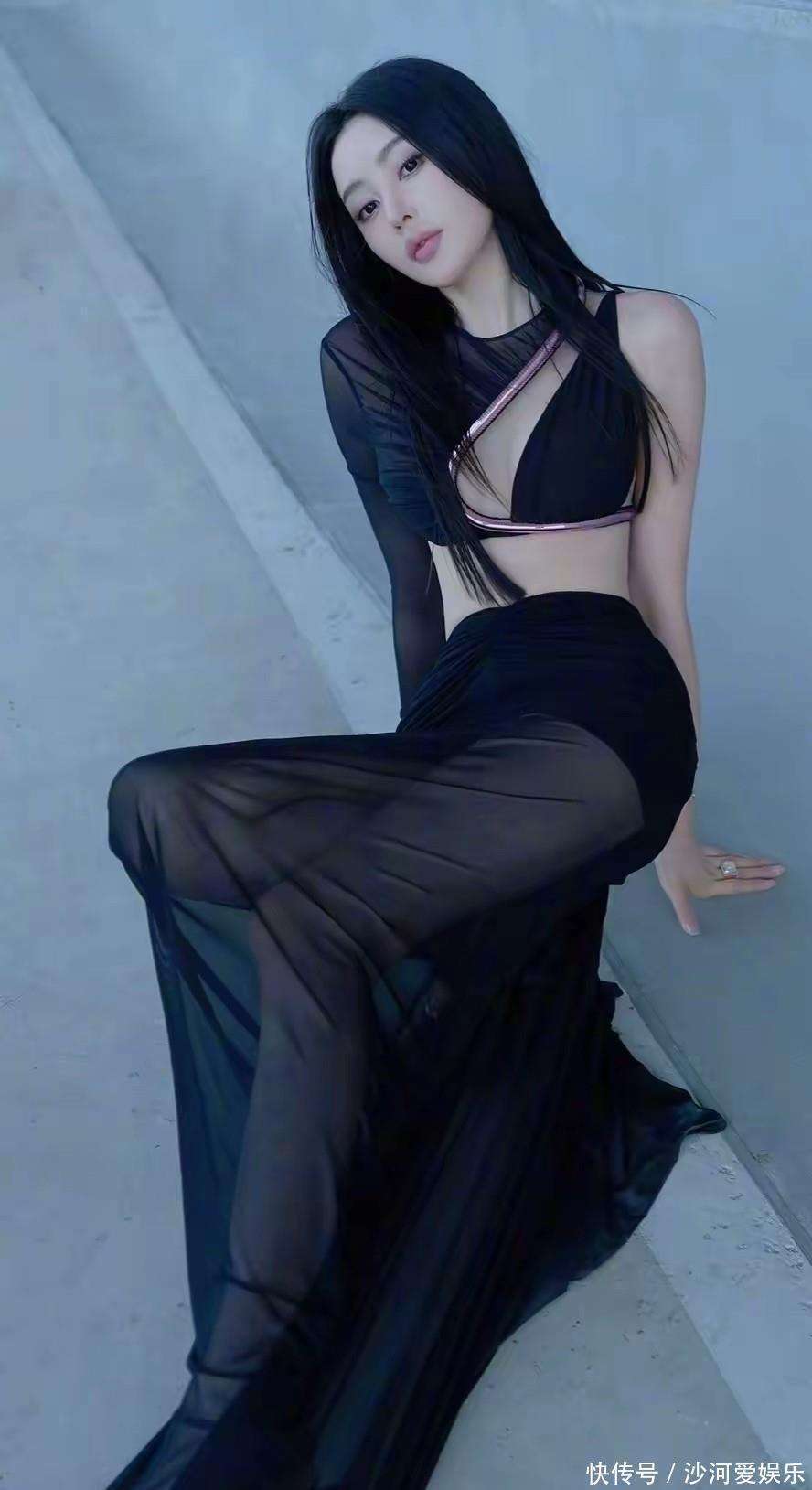 接着,张天爱换上了另一套黑色系的服装。上衣的透明网纱与白色斑点设计相得益彰,而胸前的金色立体尖状项链大胆别致,为整套造型增添了不少时尚感。她的腰间系着一条金色圆形装饰腰带,巧妙地勾勒出她纤细的腰身,让上下身的比例更为和谐。这一套服装再次印证了一个重要的时尚观念:好身材的关键不在于是否瘦,而在于比例。