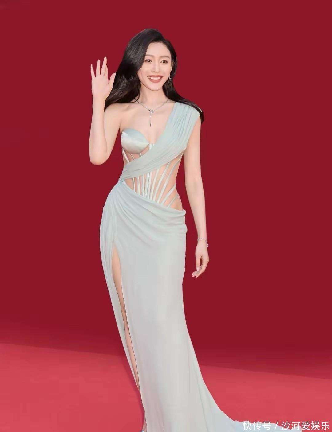 在这组照片中,张天爱身穿一袭深V领的吊带礼服裙,裙身的蓝银渐变珠串设计独具匠心,灯光下闪烁着迷人的光泽。她侧头叉腰,展现出优雅与自信,完美地勾画出她清瘦却充满曲线的身材。令人惊艳的是,尽管她的身形纤细,却依然保持着流畅的曲线感。礼服的剪裁把她的身形比例拉得恰到好处,既高挑又展现出独有的女性魅力。