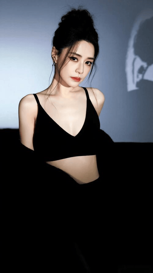 钟欣潼穿着黑色内衣,搭配黑色裤子,她俏脸明艳动人,五官精致,长发盘起,露出白皙的香肩和事业线,纤细的小蛮腰,绝对性感撩人!